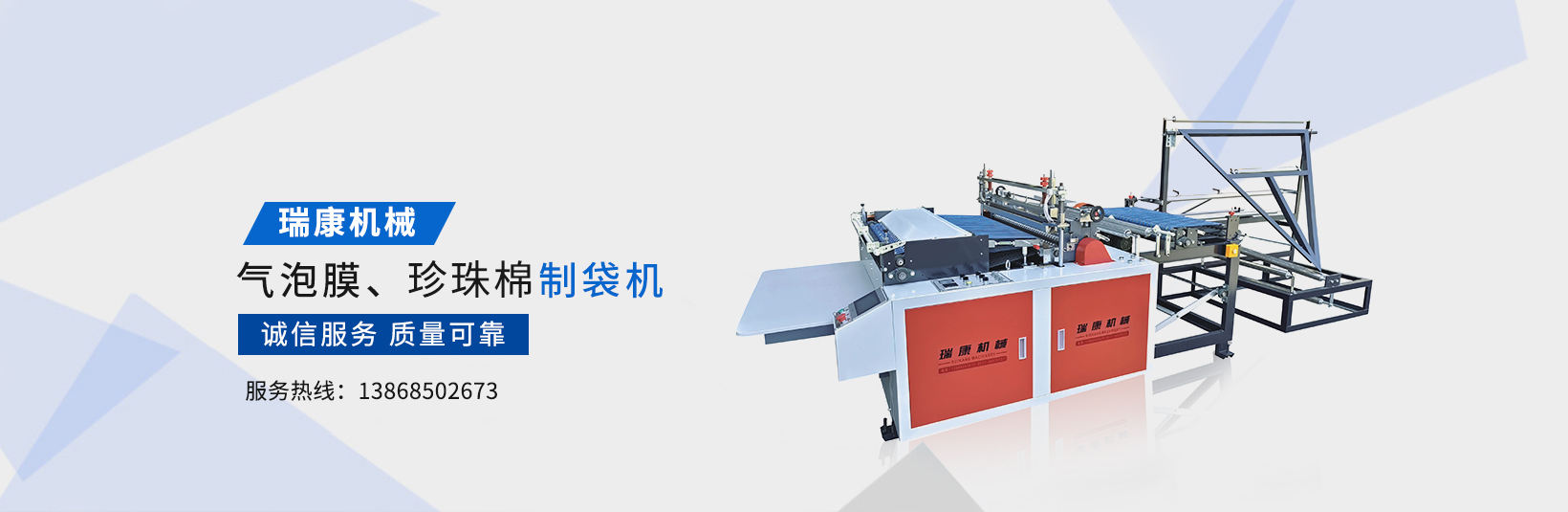 溫州瑞康機械有限公司(www_wzruikang_com.hjpz157.cn)主要生產氣泡膜機,快遞袋制袋機,包裝機,制袋機等設備。瑞康機械是國內生產塑料軟包裝系列機械設備的專業廠家之一。產品質量可靠、誠信服務,深受用戶好評,市場占有率節節攀升。